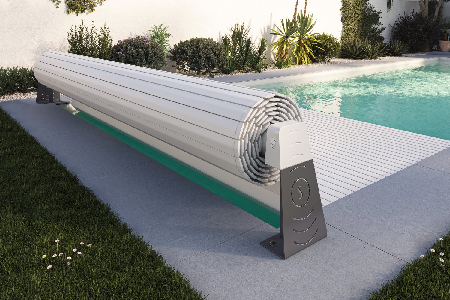 A Maldives moduláris, motoros medence feletti redőnyös fedés a modern dizájnt ötvözi a praktikummal. Kézi működtetésű változatra is fejleszthető ergonomikus hajtókarral az egyszerűség jegyében. Cserélhető színes lamellákkal rendelkezik, gazdaságos, környezetbarát és könnyen telepíthető. Elegáns és minimalista kialakítása kiválóan illeszkedik bármilyen medence környezetébe.